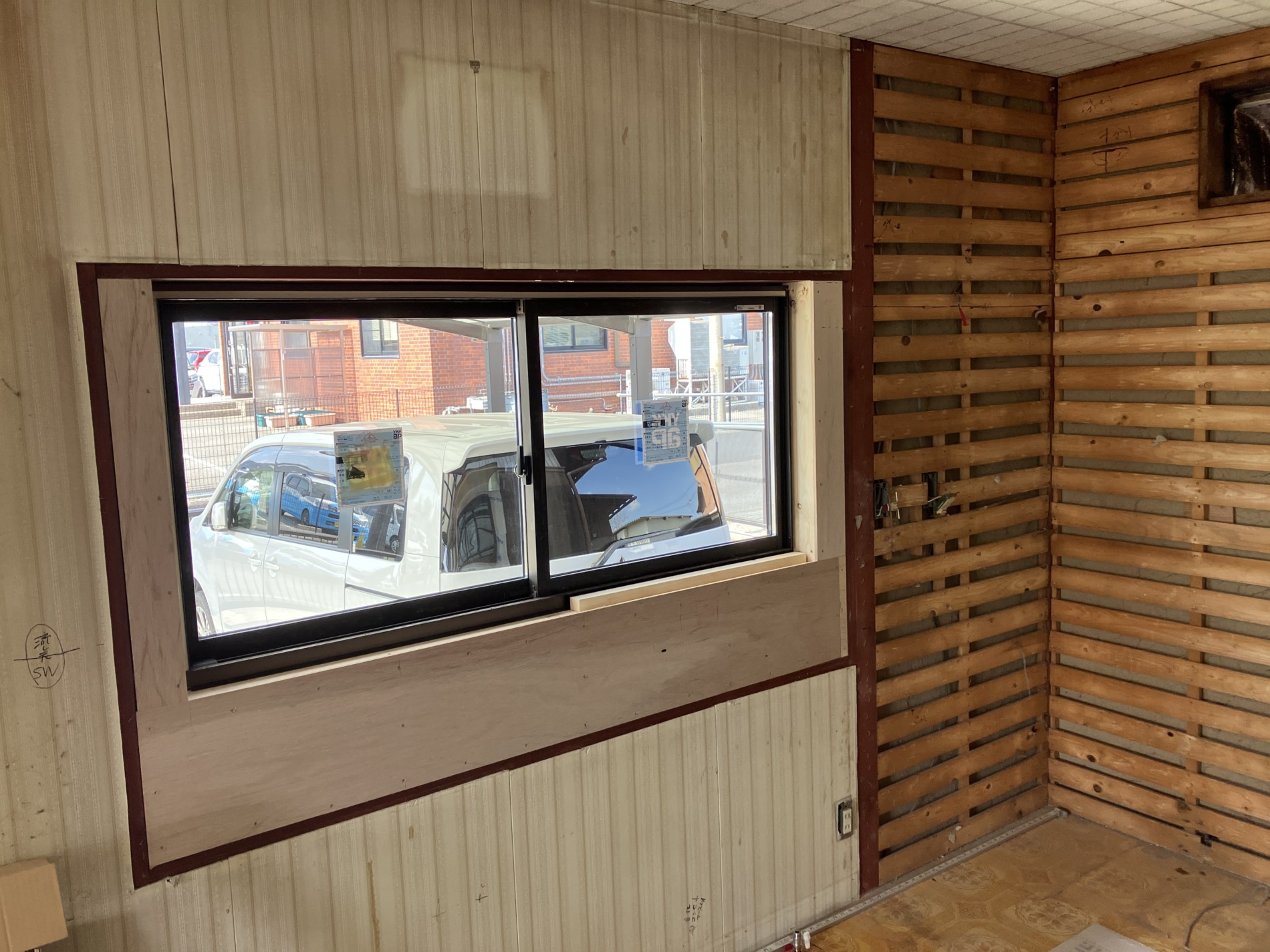 お家の構造上柱の撤去が出来ないため、こちらは柱を生かし壁を起こし