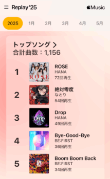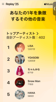 年末になるとその年に私がたくさん聴いたアーティスト・曲をランキング化してくれます