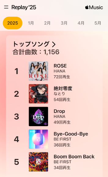 この月はライブがあったからたくさん聴いていたなぁ、など一年を振り返ることができて面白いです