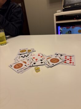 ババ抜きをしたのですが、まゆみさんの提案で一人一回サイコロを振って、手札を入れ替えるという特殊ルールが発動!