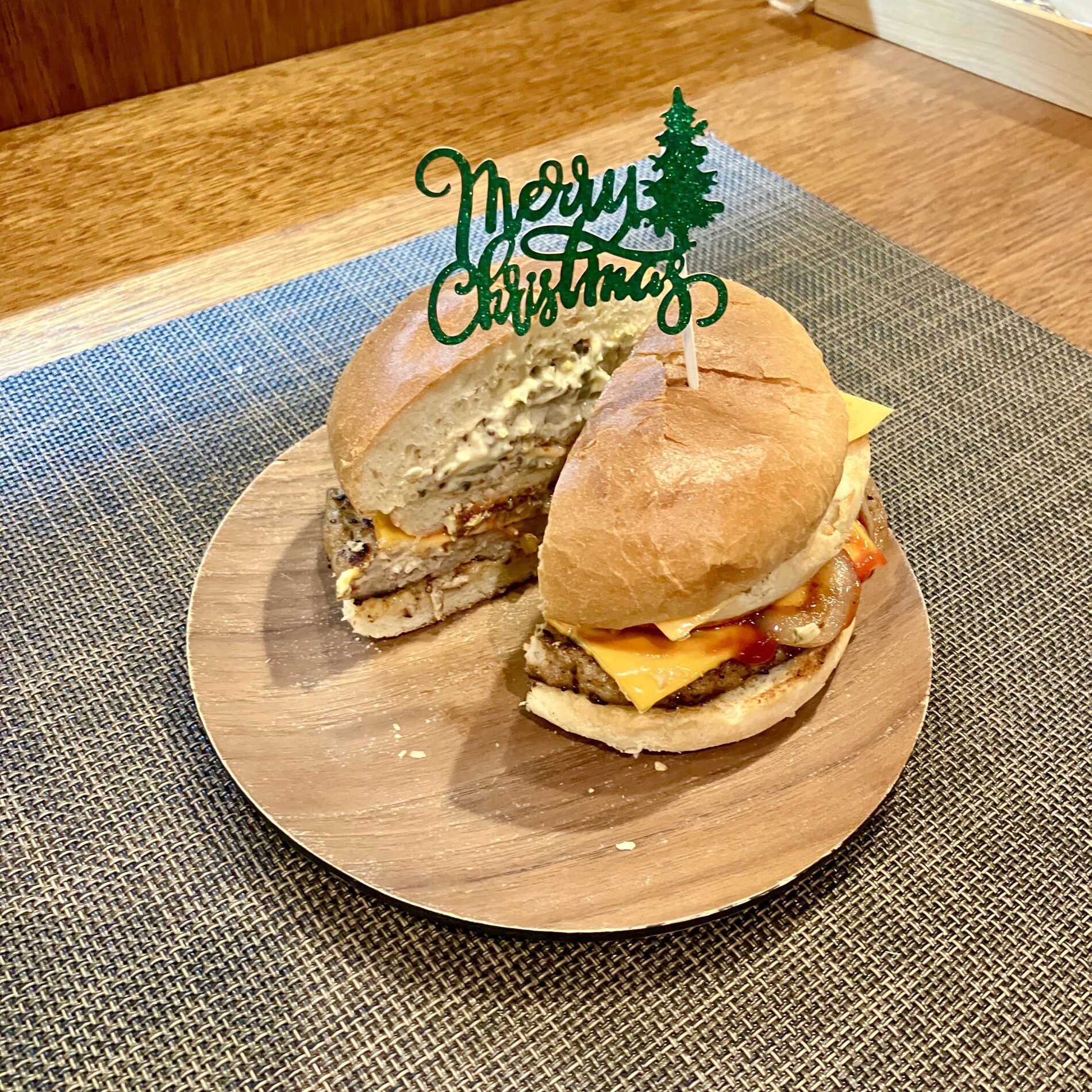 「サーフ アンド ターフ」とは、海の幸(Surf)と大地の恵み(Turf)の組み合わせを意味する料理のスタイルです。ハンバーガーで言えば、エビや魚介と牛肉のパティを一緒に挟んだものを指します。