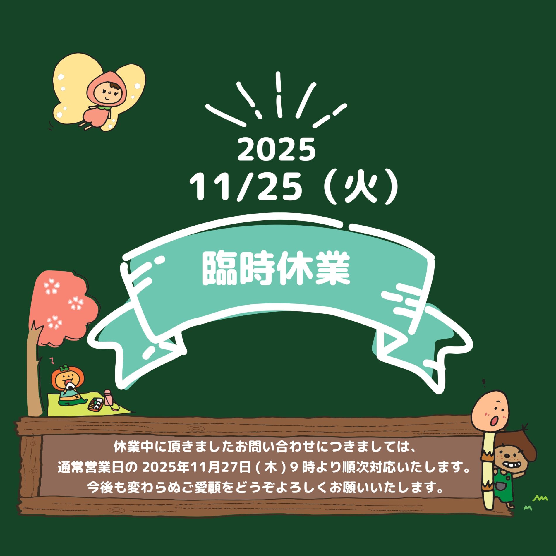 2025年11月25日(火)は臨時休業とさせていただきます。