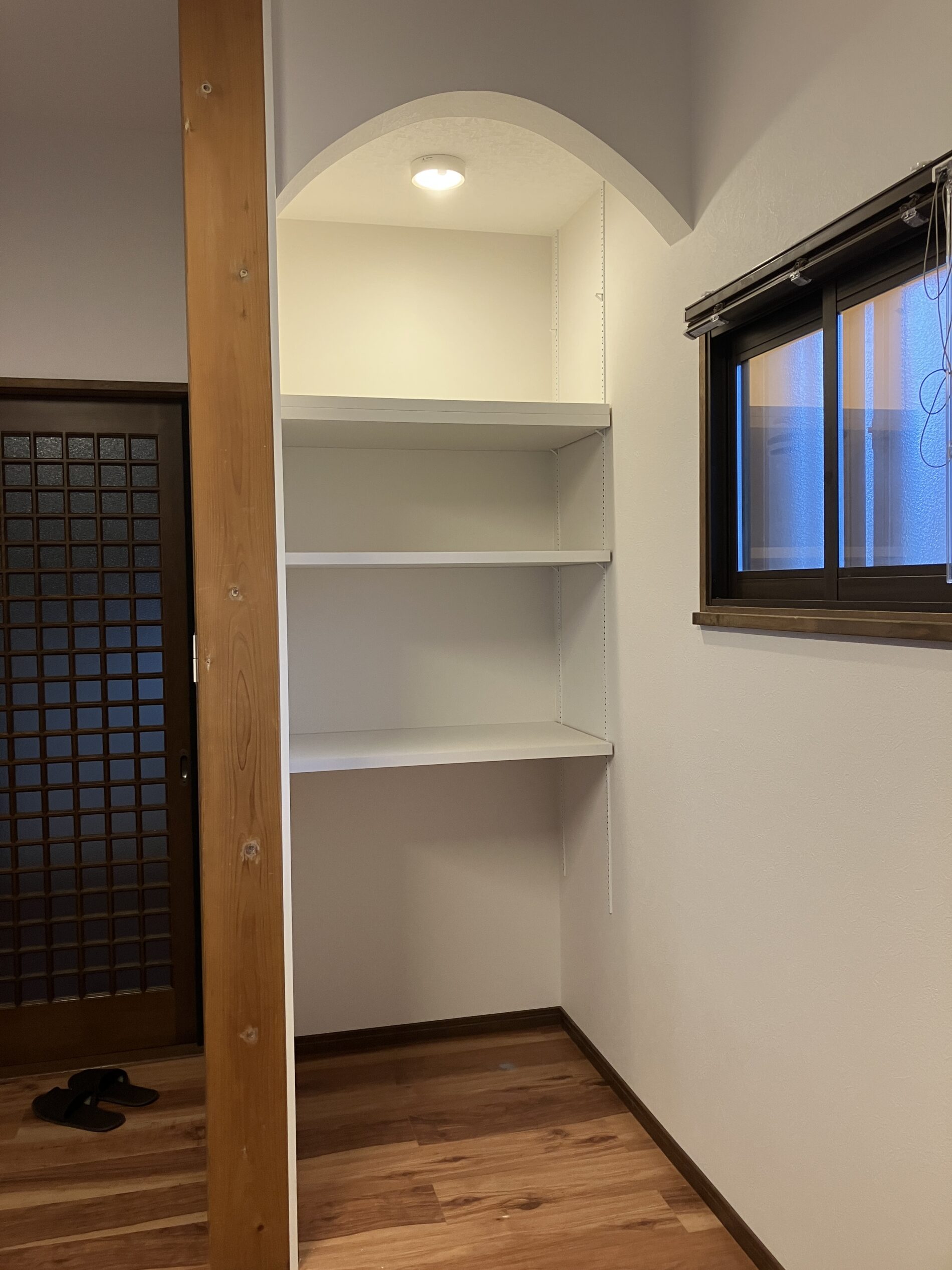 キッチン横の収納は垂れ壁をアーチに仕上げました!!