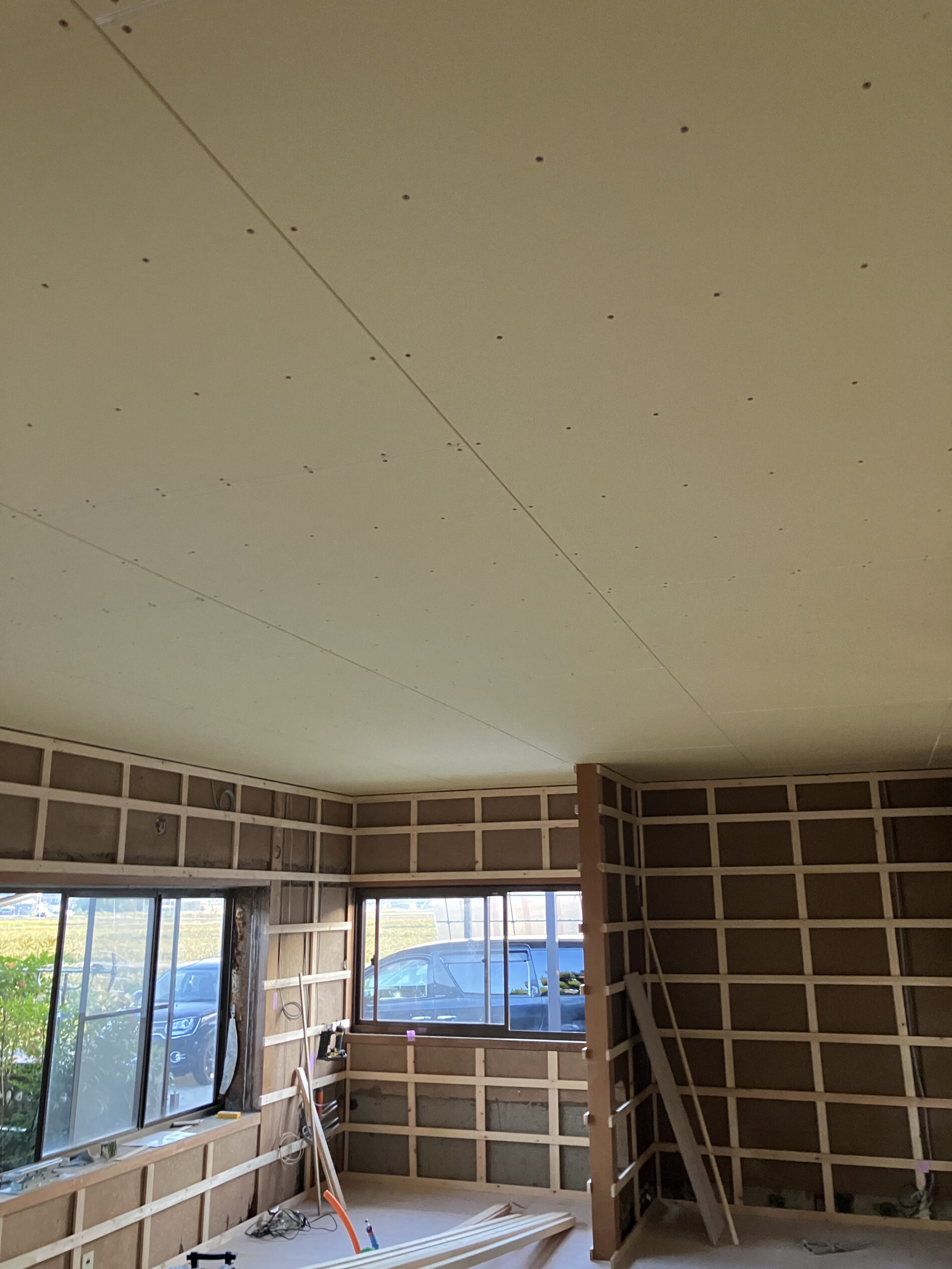 天井は垂木で下組をして上から石膏ボードを次に貼っていきます