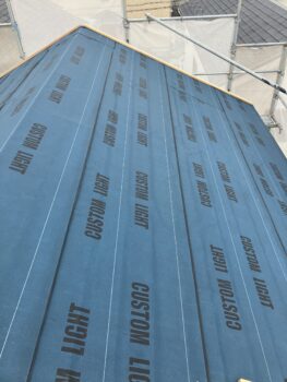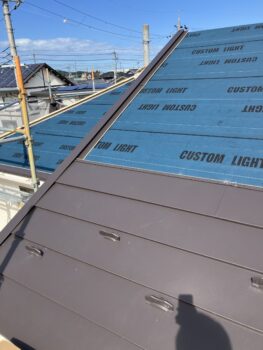 まずは、屋根に粘着タイプのルーフィングを敷詰めてから施工します!