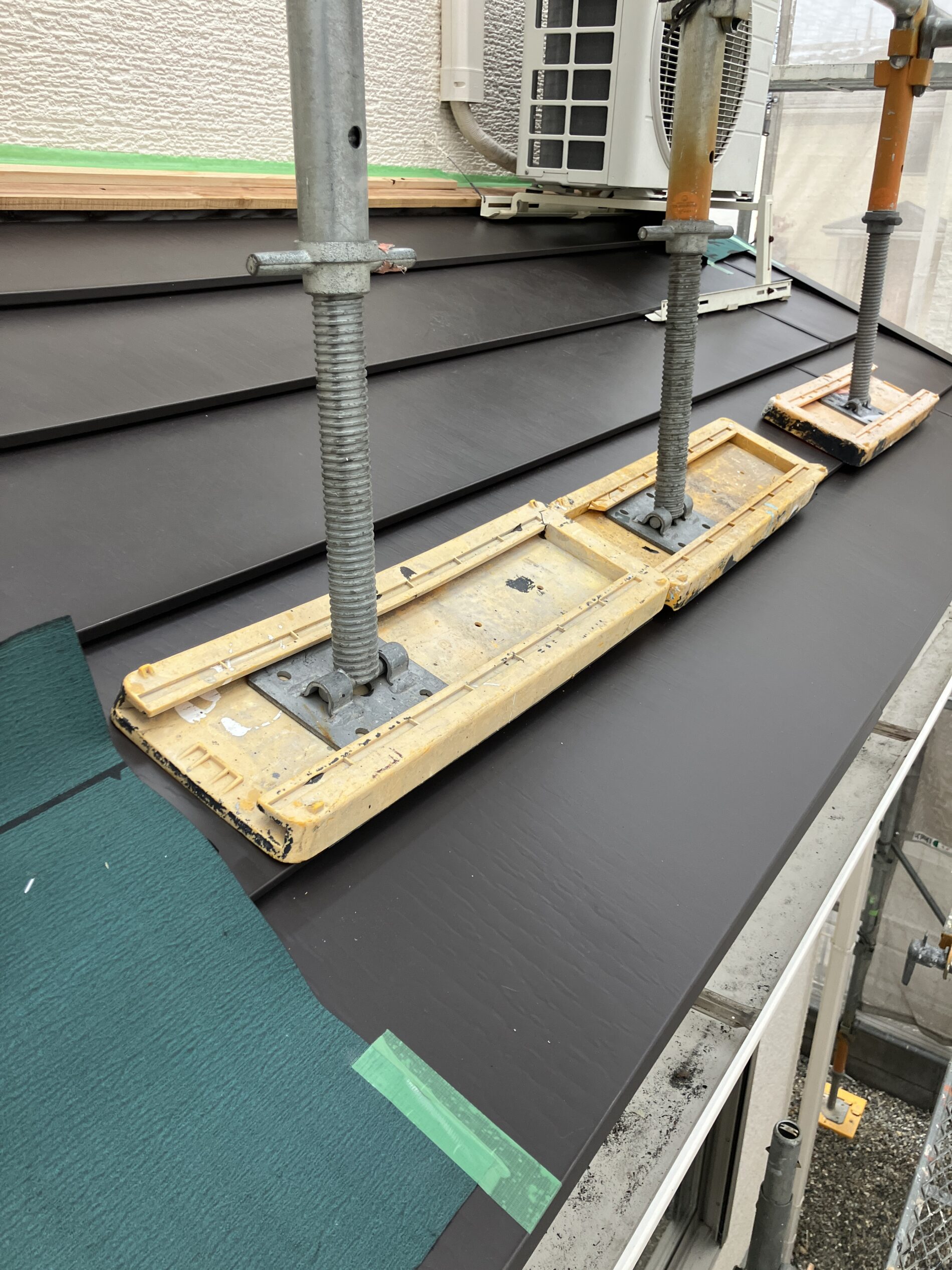 今回はスレート屋根の上から横暖ルーフαを上貼りしています!