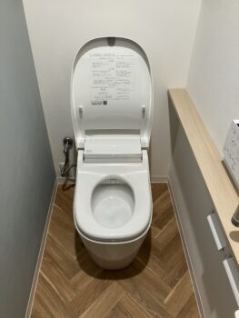 トイレが変わるだけで雰囲気は変わりますが、やっぱりクロスなども一緒に新しくするとガラリと変わるのでお客様の満足度も高いです!