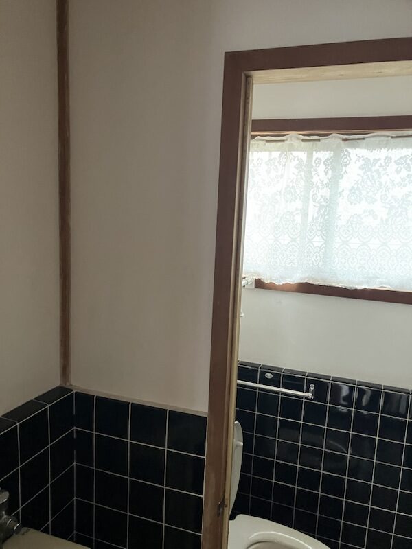 この空間を間の壁を解体し、小便器も撤去して、タイルも全て隠して洋風の1部屋のトイレ空間へと