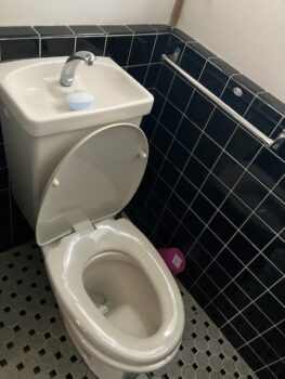 現在、小便器と洋便器があり、内装もタイル仕上げとなっています。