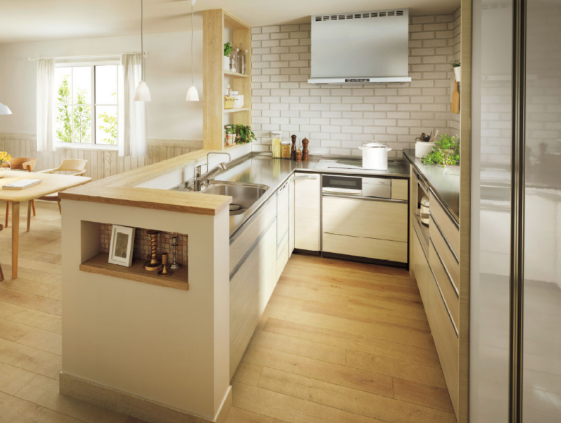 ペニンシュラ型は、キッチンの左右どちらかを壁につけます