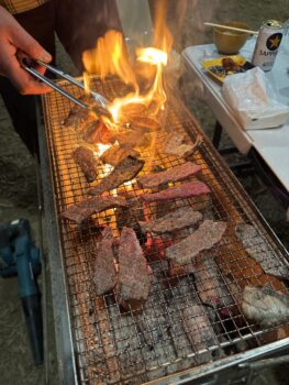 風を感じながら、炭火で焼くお肉はいつも以上に