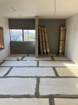 壁天井とクロスを貼って床のシートを張る準備中です