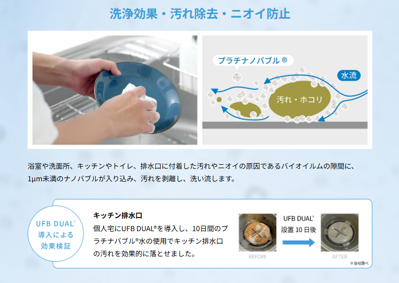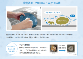 まず一つ目が先ほどからお伝えしてますが、洗浄効果・汚れ除去・ニオイ防止です。