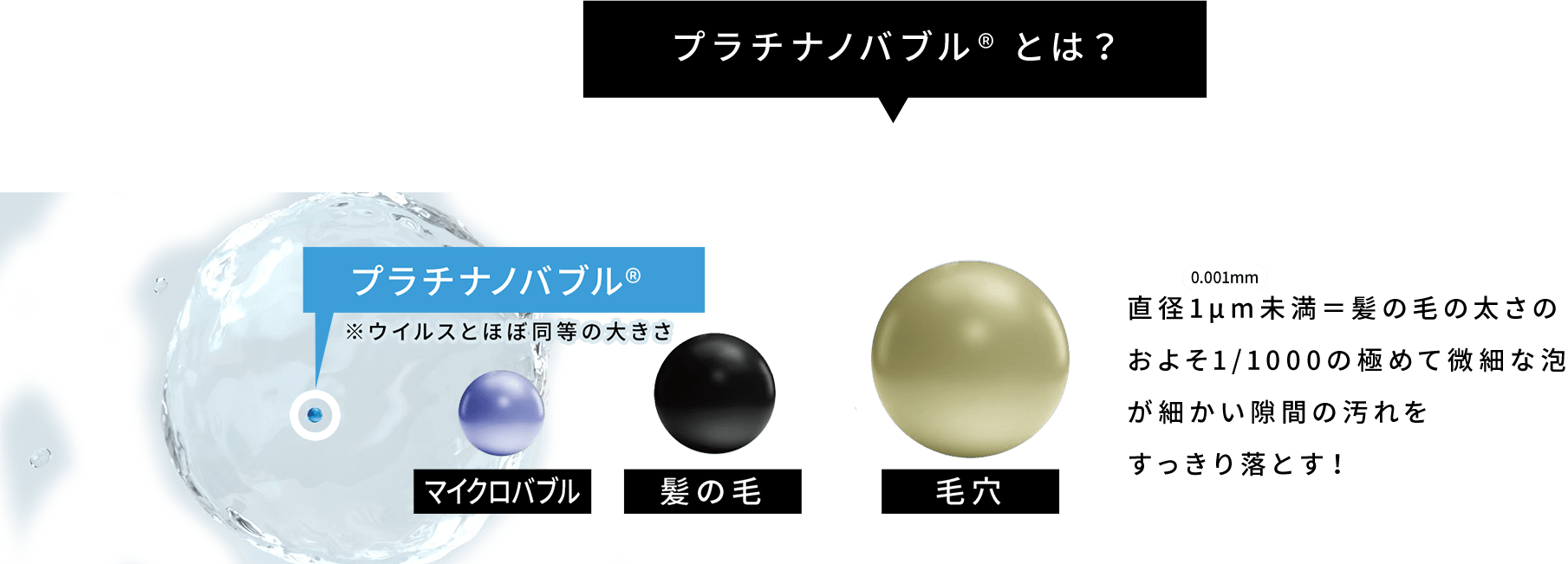 よく耳にする、ミリバブルやマイクロバブルよりも微細な泡になります。