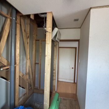 お家の構造上柱の撤去が出来ないため、こちらは柱を生かし壁を起こし
