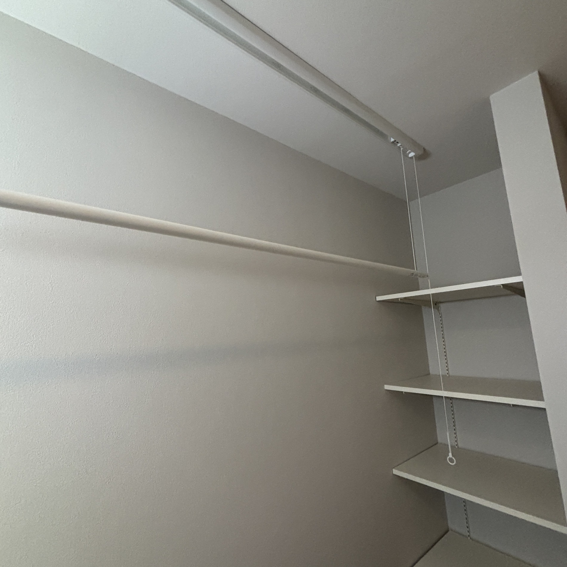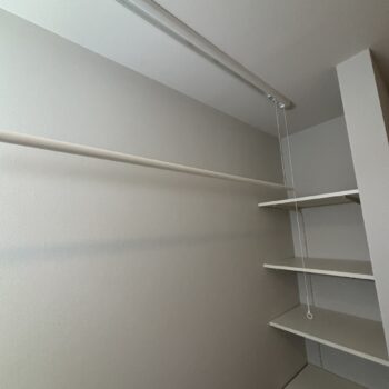 可動棚や物干し竿は重さの負荷がかかるため下地材が必要となります。