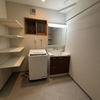 洗面台と洗濯機は隣り合わせにレイアウト変更しました。