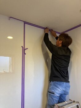 一枚ずつパネルを貼っていくのですが、窓やカウンターに合わせてカットしながら貼っていくので思っている以上に施工時間はかかります