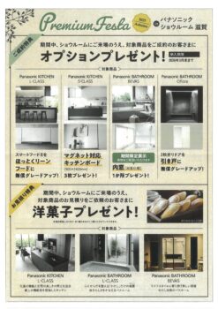 ショールームにはキッチン・お風呂・洗面台・トイレの展示がたくさんあり、当日はIHクッキングヒーター調理実演もできるそうです。