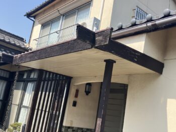 以前の庇は、勾配があまり無く、雨樋を庇に内包されており、