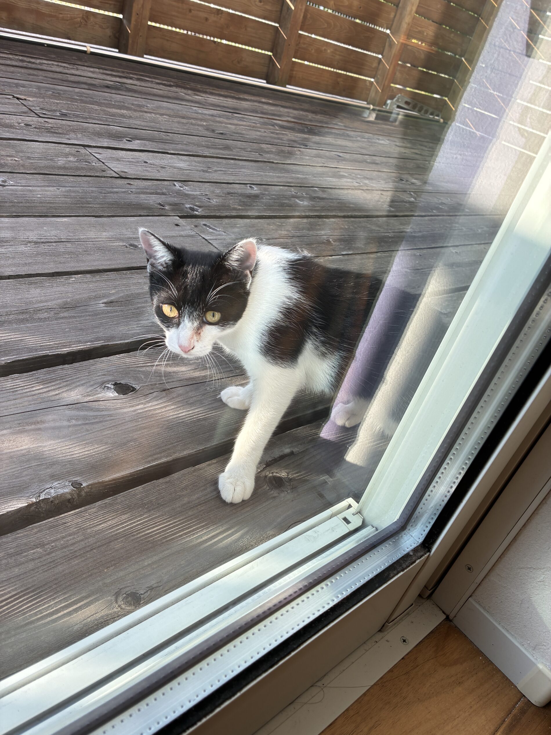 ある日鳴き声が近くでするのでカーテンを開けてみると