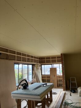 前回は天井は垂木で下組をして上から石膏ボードを次に貼りました