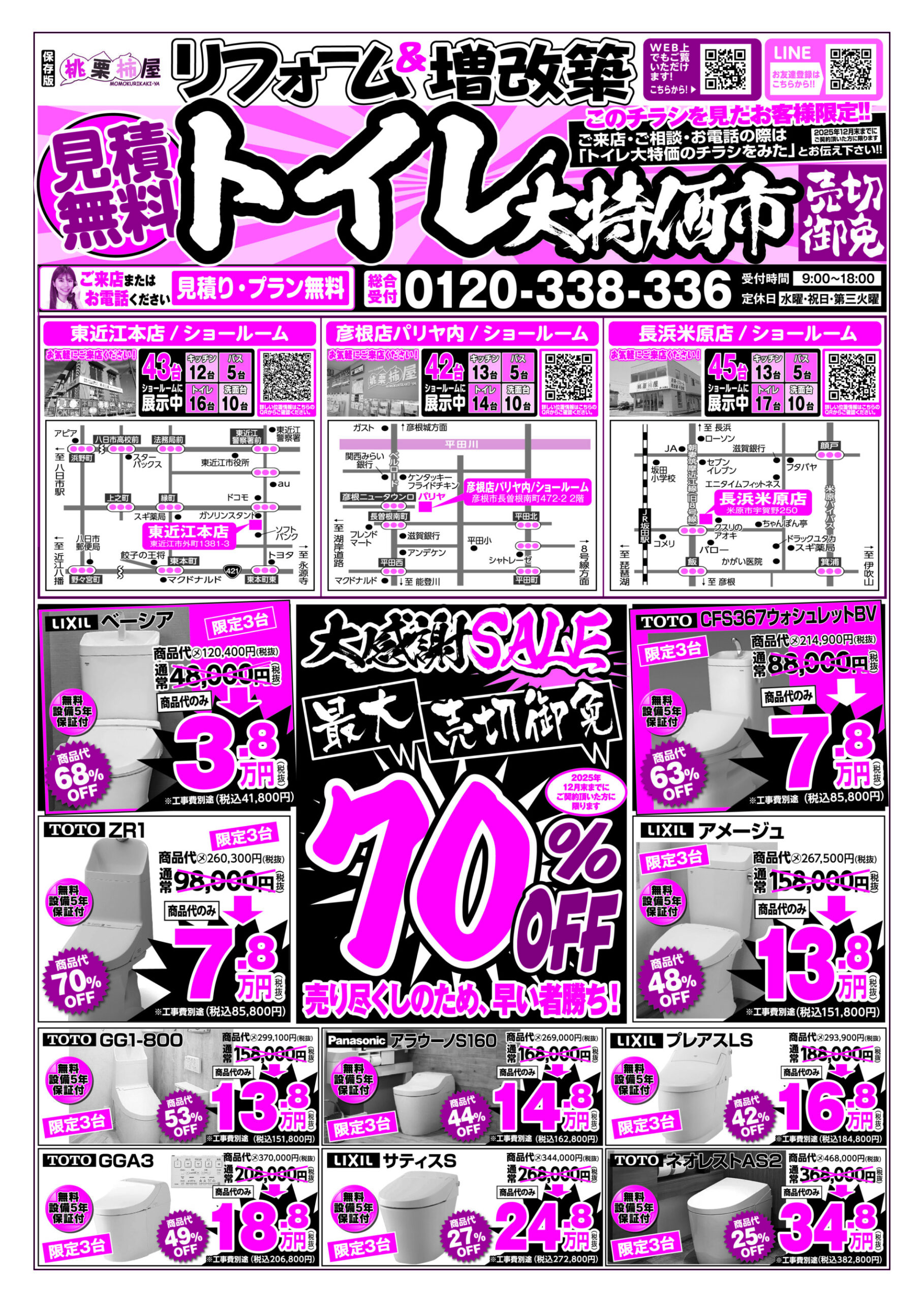 株式会社 桃栗柿屋では、随時トイレ大特価市開催!のご予約を受け付けております。