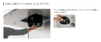 レンジフード内のファンの汚れをお湯で自動洗浄してくれます