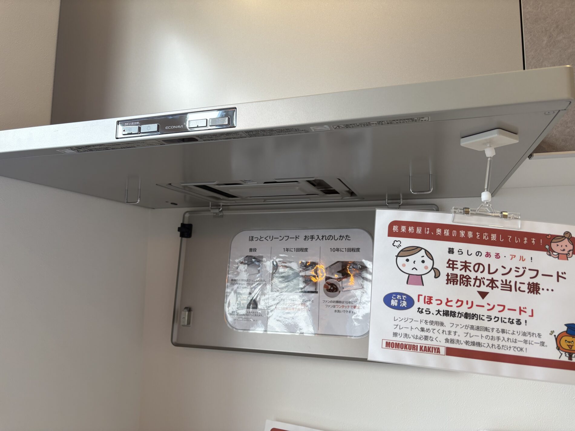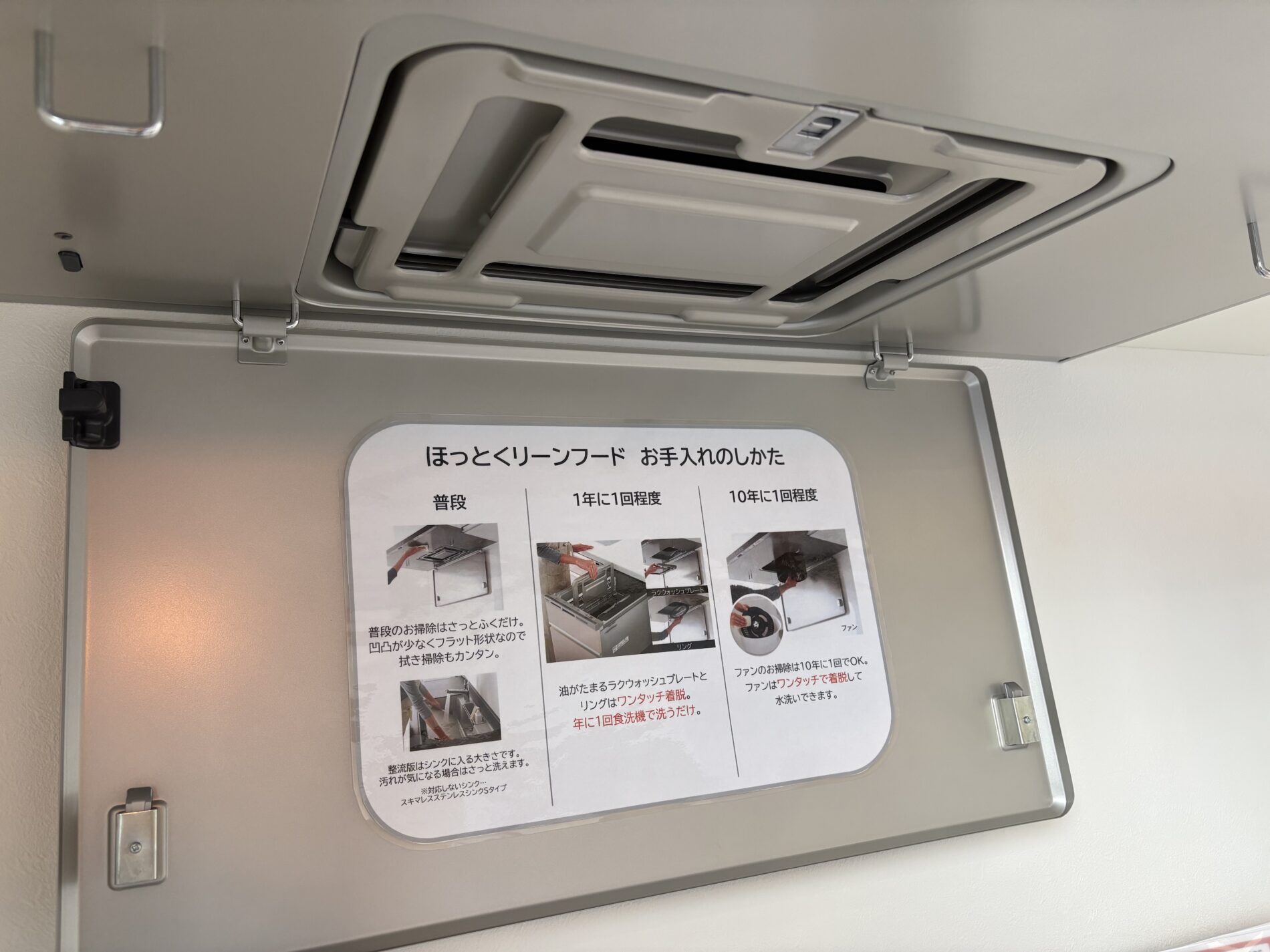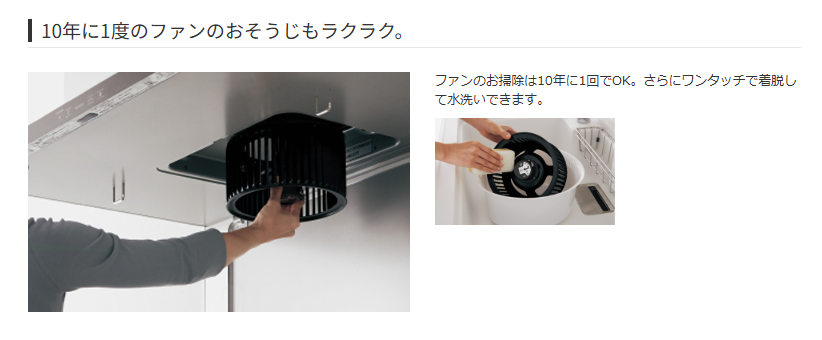 たまに掃除するにしても、従来のレンジフードであればフィルターを外して、部品をとって、ファンを外して、こすり洗いをして・・・