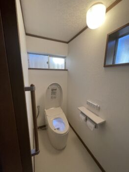 ~蒲生郡 トイレ・脱衣室リフォームをされたお客様のきっかけ~ トイレの使い勝手を良くしたい、洗面所を綺麗にしたいという思いがあり、今回のリフォームをお願いしました。特に、以前からあった小便器をなくして空間を広く使いたいと考えていたことと、脱衣場全体も古くなっていたので内装も含めて一新したいと思ったのがきっかけです。
