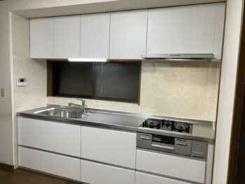 <担当者からのコメント> 洗面台に引き続きキッチンの交換もお任せいただき、誠にありがとうございました。再度お声がけいただけたこと、大変嬉しく光栄に存じます。今回は、スッキリとしたデザインと使い勝手の良さが魅力のPanasonic『Vスタイル』を設置いたしました。「桃栗柿屋さんに頼んで本当によかった」と喜んで頂きました。ステンレス表面の凹凸がエンボス加工なので、キズが目立ちにくく、油汚れも弾きやすく、汚れも落しやすくなっています。新しくなったキッチンをご覧になり「桃栗柿屋さんに頼んで本当によかった」と喜んで頂きました。