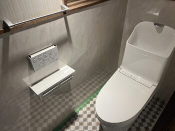 <担当者からのコメント> この度はトイレの改修工事をお任せいただき、ありがとうございました。今回は、ご自身での施工を試みられたところからのバトンタッチということで、まずは下地をしっかりと整えることから始めました。お手入れが大変だったタイル貼りの内装から、お掃除がしやすく明るい印象のクロス(壁紙)とクッションフロアへ変更したことで、空間がガラリと新しくなりました。トイレ本体には、TOTOの『ZR1』を設置いたしました。ZR1は、汚れが付きにくいセフィオンテクト加工や、少ない水でしっかり流す「トルネード洗浄」を搭載した、コストパフォーマンスと機能性のバランスが非常に優れたモデルです。素早い対応で「桃栗柿屋さんに頼んで本当によかった」と喜んで頂きました。