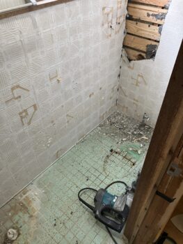~長浜市 トイレリフォームをされたお客様のきっかけ~ 自分たちでリフォームに挑戦しようと、床や壁のタイルをはつり始めましたが、想像以上の重労働と難しさに途中で断念してしまいました。プロにお任せして、中途半端になっていた空間を綺麗に、そして使いやすい洋式トイレに仕上げてもらいたいと思い、依頼しました。