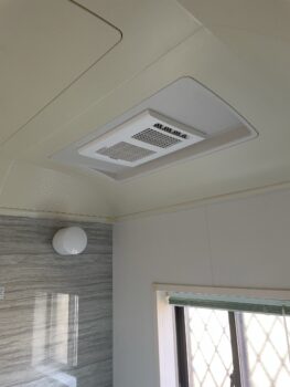 <担当者からのコメント> この度は浴室暖房換気乾燥機の新設工事をお任せいただき、ありがとうございました。ドーム型天井への設置は、通常のままでは困難ですが、今回は天井をフラットに補正する専用部材を用いることで、無事に設置を完了いたしました。これからは、入浴前にスイッチを入れるだけで浴室がポカポカになり、一番風呂のヒヤッとする寒さから解放されます。また、換気・乾燥機能により、雨の日の衣類乾燥や、カビの抑制にも大活躍してくれるはずです。素早い対応で「桃栗柿屋さんに頼んで本当によかった」と喜んで頂きました。